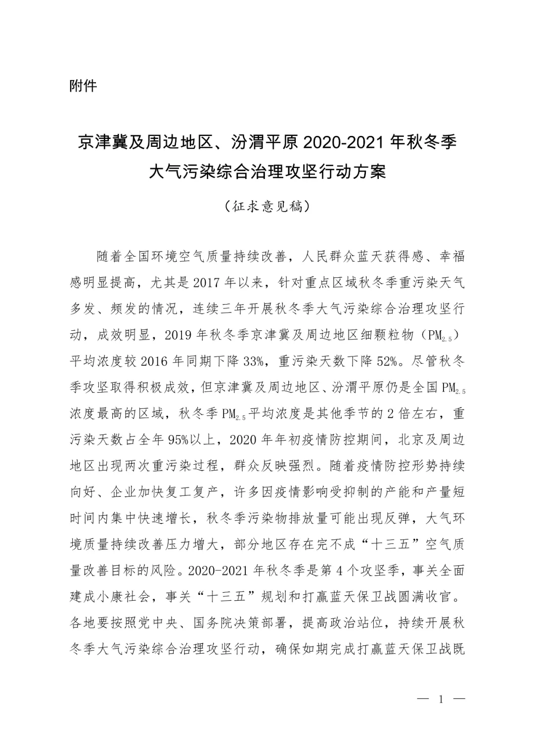实施时间:行动方案持续时间为2020-2021年秋冬季