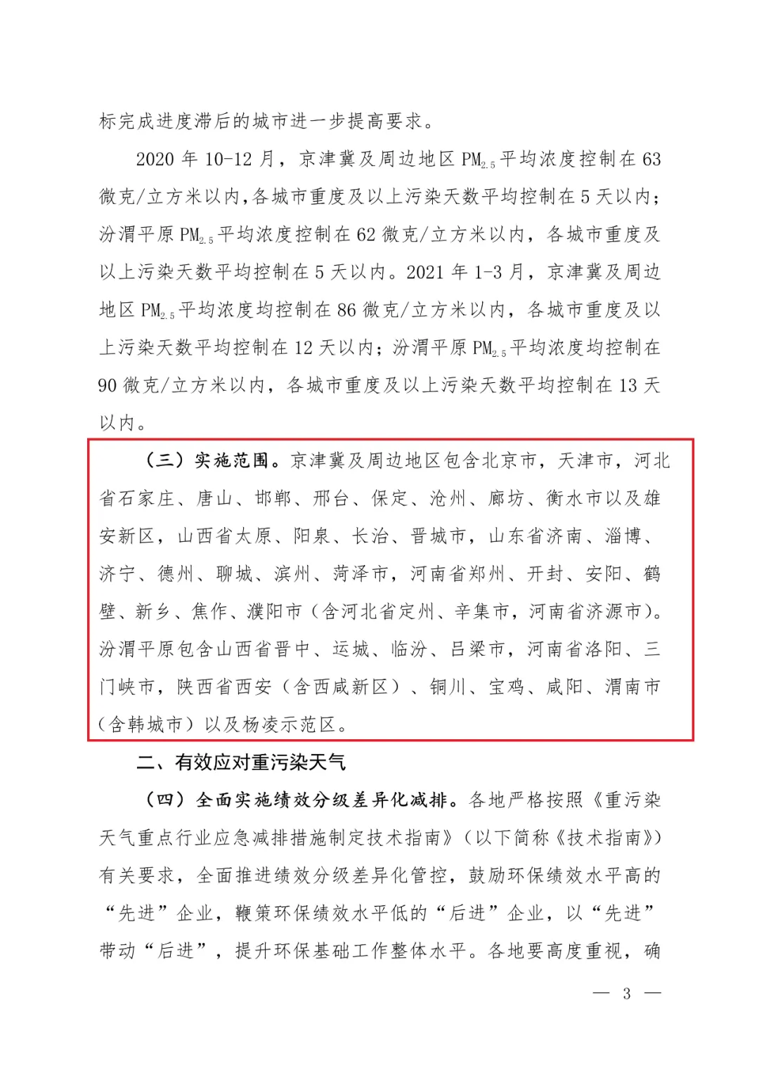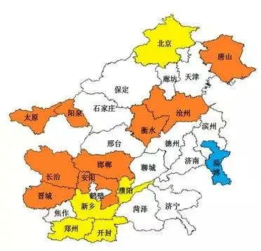 河北省:石家庄、唐山、邯郸、邢台、保定、沧州、廊坊、衡水市以及雄安新区;山东省:济南、淄博、济宁、德州、聊城、滨州、菏泽市;河南省:郑州、开封、安阳、鹤壁、新乡、焦作、濮阳市(含河北省定州、辛集市,河南省济源市)。陕西省:西安(含西咸新区)、铜川、宝鸡、咸阳、渭南市(含韩城市)以及杨凌示范区。